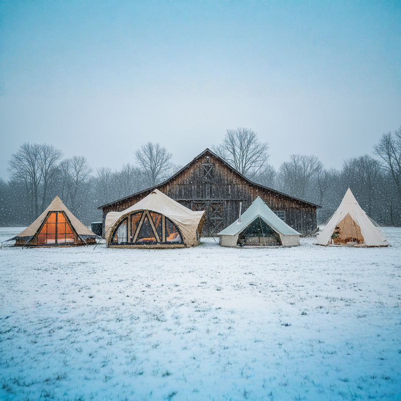 Bold architecture and natural materials create spaces that elevate every outdoor experience, from festivals to farm stays.