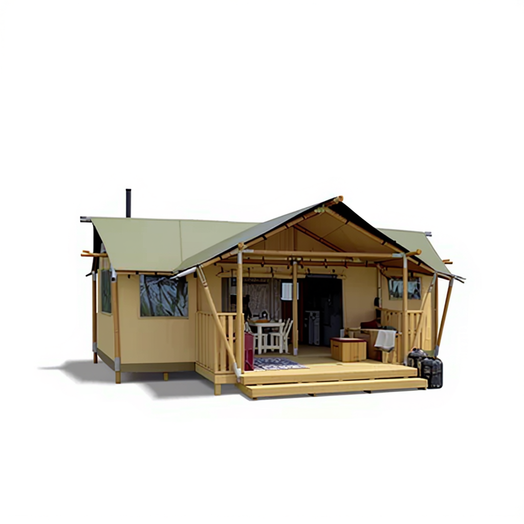 The Safari Tent is the definitive icon of luxury glamping, featuring a classic double-top peaked roof and expansive open-air decking. Engineered with heavy-duty timber or galvanized steel frames and industrial-grade canvas, it creates a massive, breathable interior that seamlessly blends indoor comfort with the raw outdoor environment.