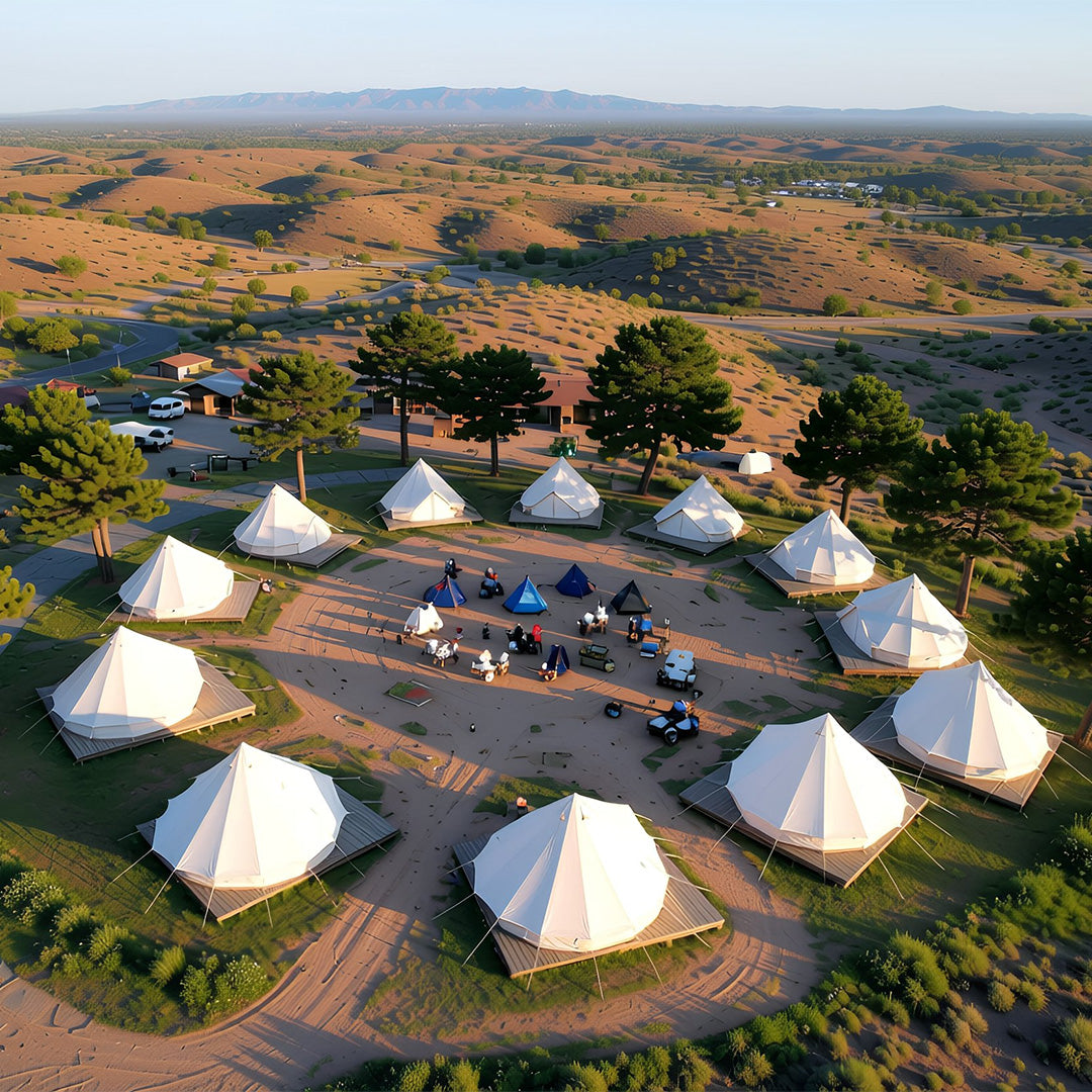 Engineered glamping structures utilizing heat-resistant, UV-stabilized fabrics and reinforced framing systems, designed for desert wind conditions. Units were deployed in controlled phases to validate demand while preserving capital flexibility and minimizing site disruption.