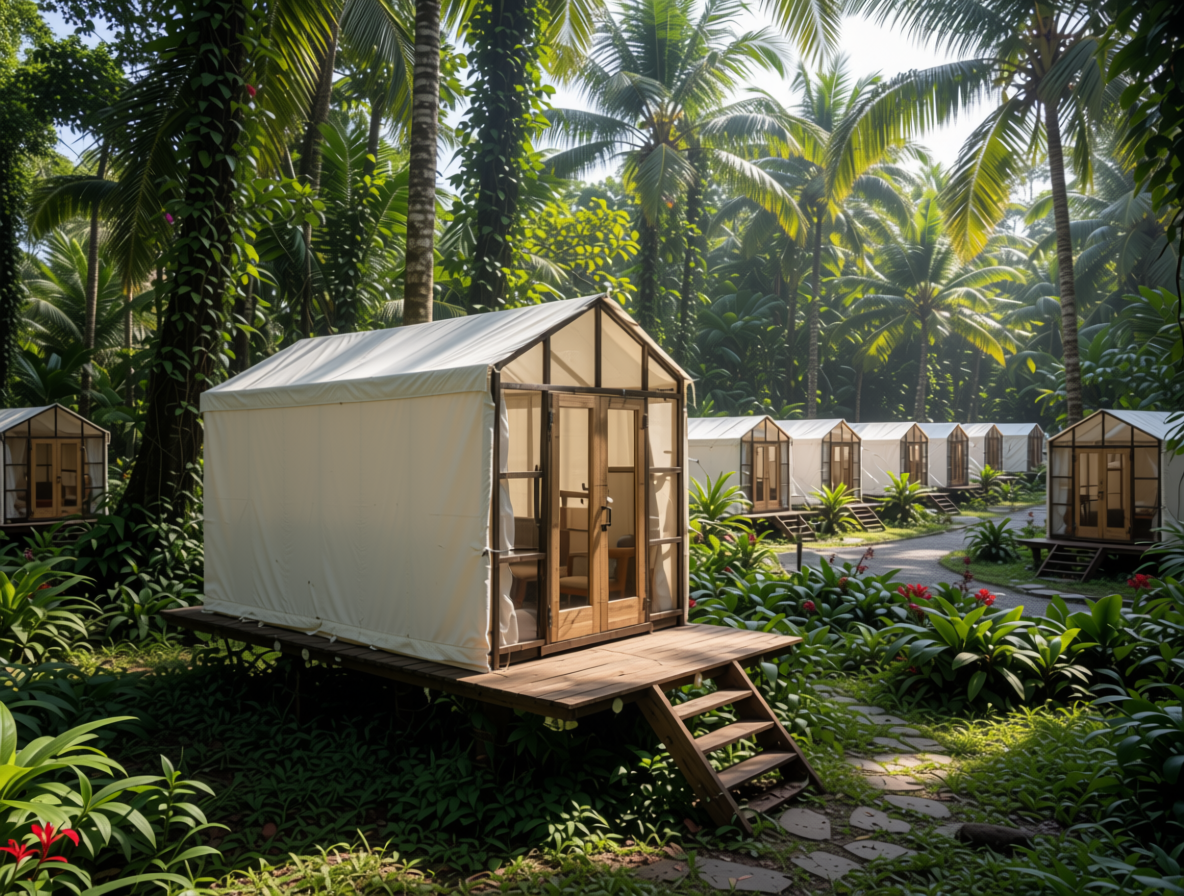 Deploy luxury accommodations in the world's most challenging climate. Our rainforest-optimized structures combine advanced waterproofing with superior airflow systems—delivering guest comfort in environments where traditional construction deteriorates rapidly and conventional glamping fails.