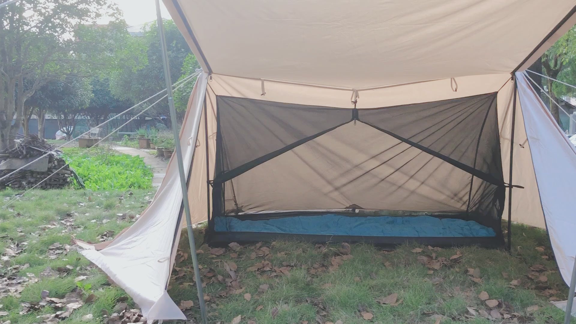 The Shelter / Saxon Tent is a premium two-layer camping system offering a massive, luxury footprint (19.7 ft x 10.3 ft) for 1 to 2 people. It features a classic, stable design supported by durable galvanized steel poles. The outer layer utilizes heavy-duty 280g Polyester Cotton Canvas, treated to be waterproof and mildew-proof for reliable protection. Equipped with large screen windows and strong air permeability, this tent ensures superior ventilation and a cool, dry, and exceptionally comfortable experience for extended glamping or base camp setup.