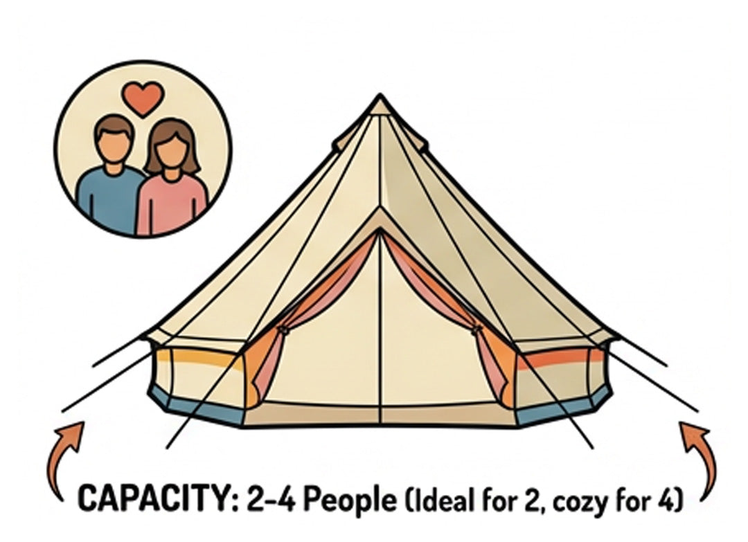 High ceilings and an open layout provide plenty of space for sleeping, sitting, and storing gear. Whether you’re camping solo or with a partner, you’ll enjoy a roomy, comfortable interior without added bulk. And don't miss out on our Half Moon Bell Tent Mat.
